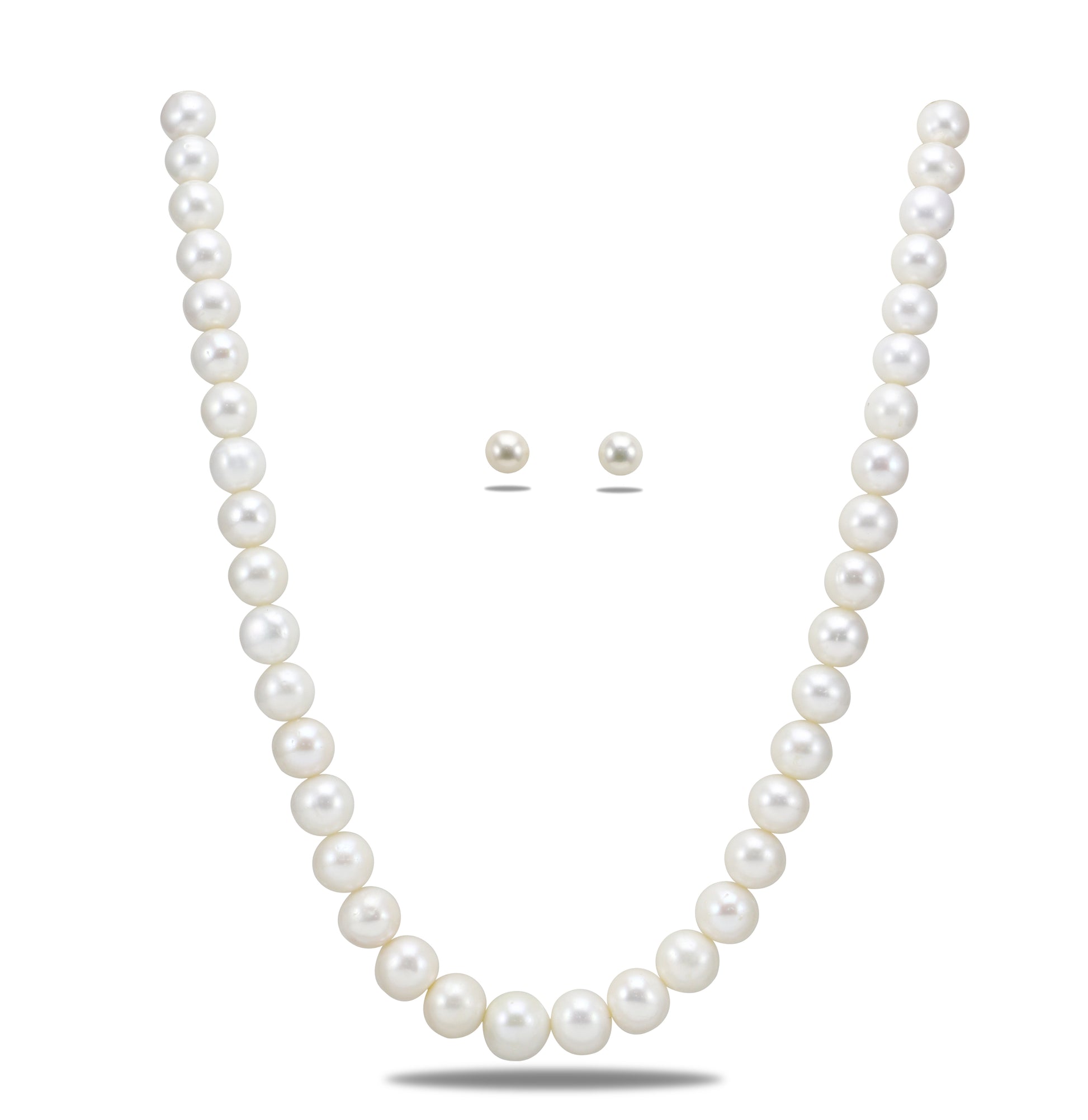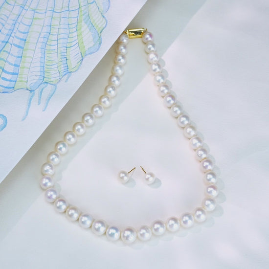 10.0-11.0mm White Round Freshwater Pearl Necklace Set - AAA Quality