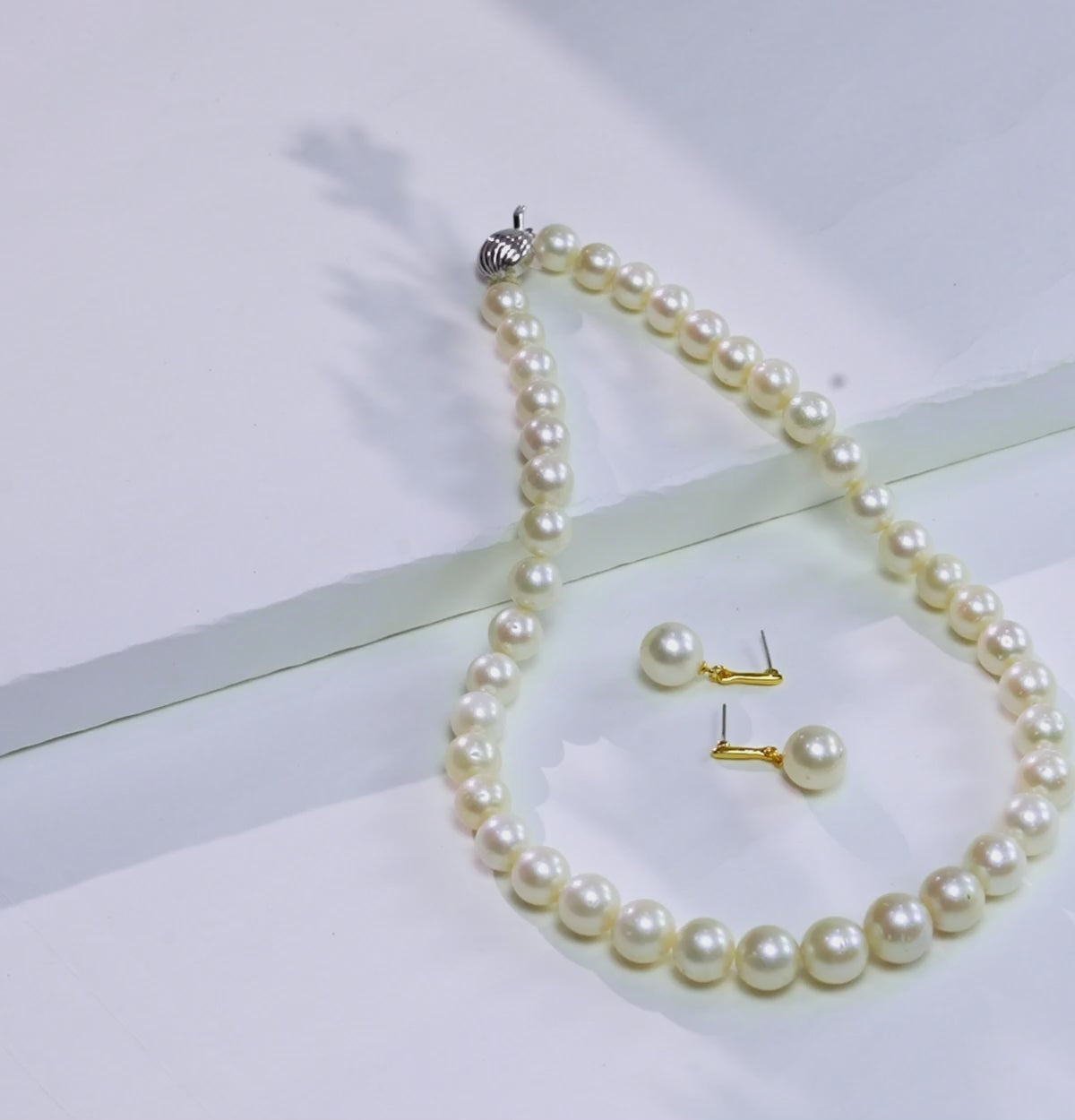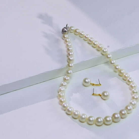 10.0-11.0mm White Near Round South Sea Pearls Necklace Set - A Quality