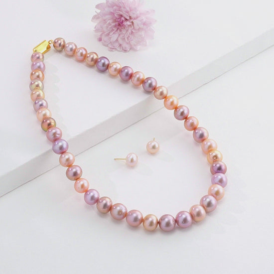 11.0-12.0mm Multicolor Near Round Freshwater Pearl Necklace Set - AA Quality
