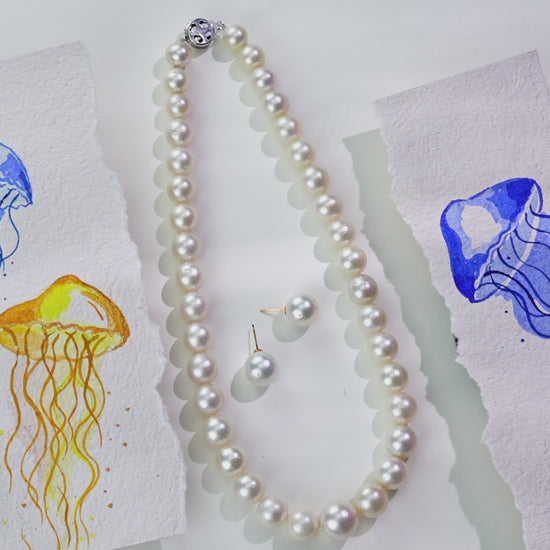 12.0-15.0mm White Near Round South Sea Pearls Necklace Set-AA Quality