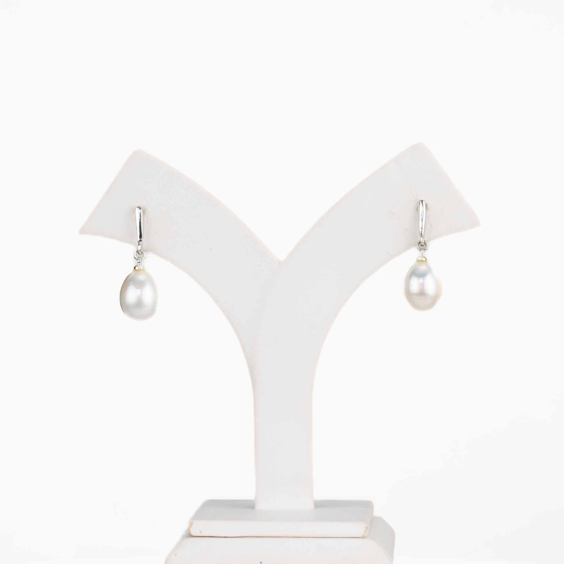 14.0-15.0mm White Drop South Sea Pearl Hanging Earrings