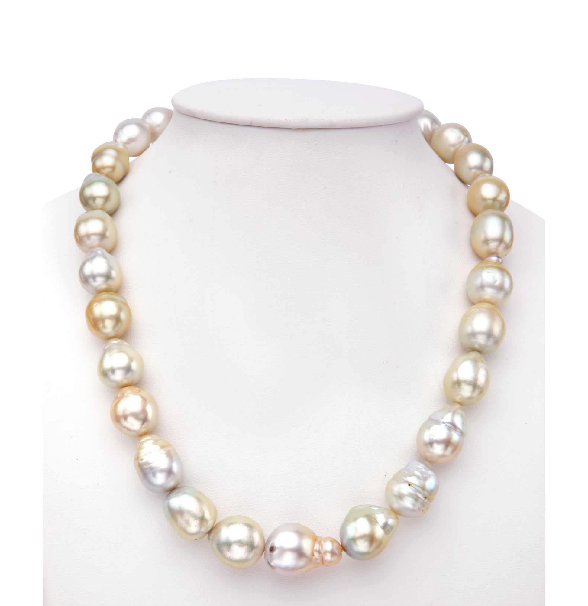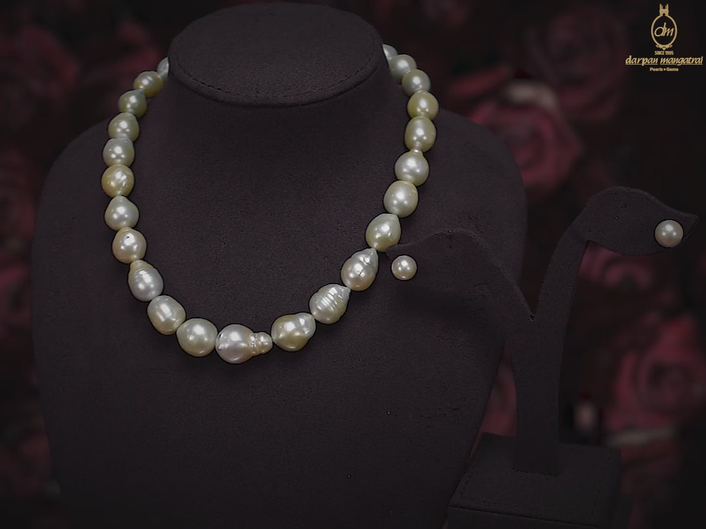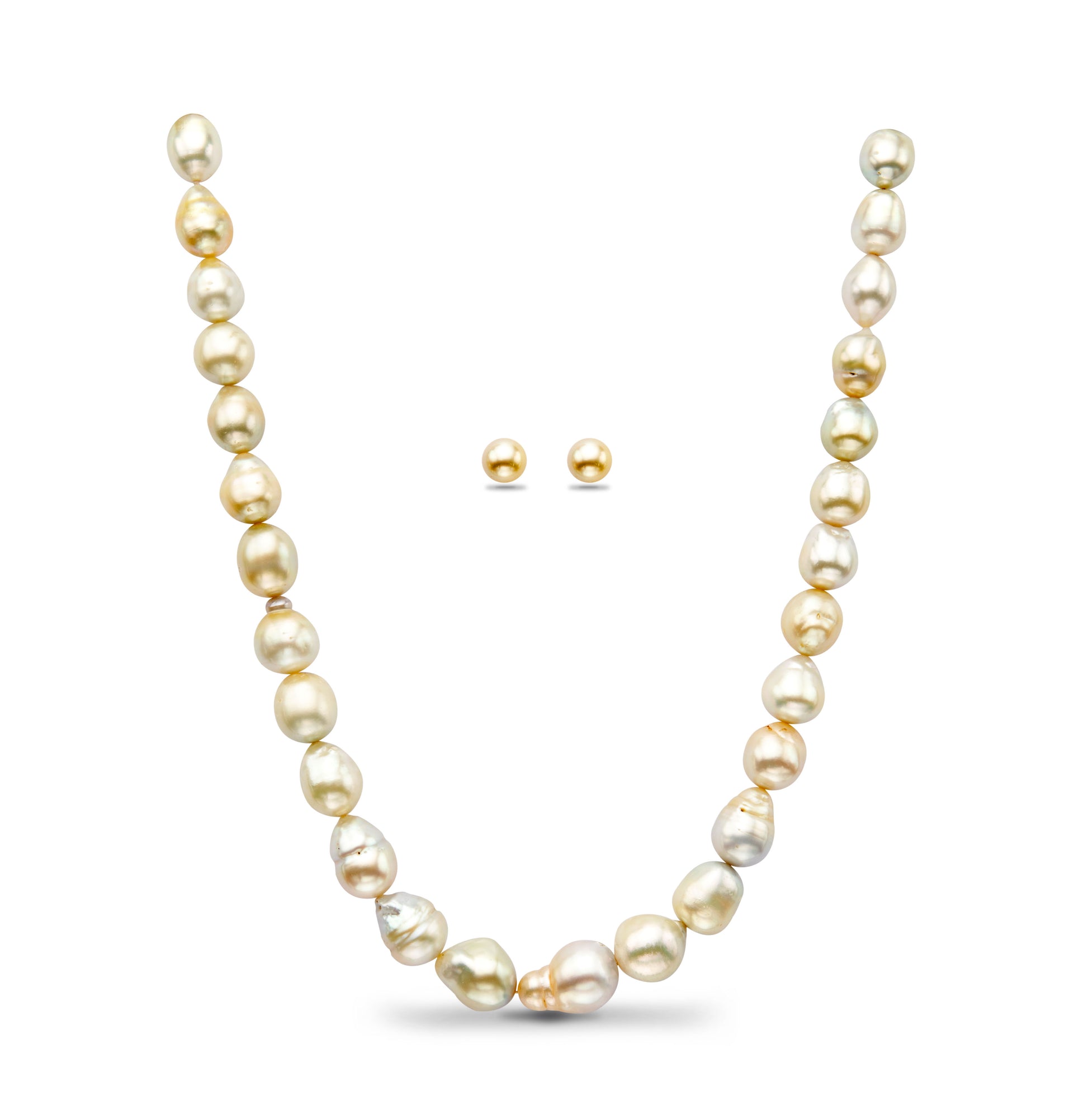 14.0-15.0mm Baroque Cream Saltwater South Sea Pearls Necklace Set-A Quality