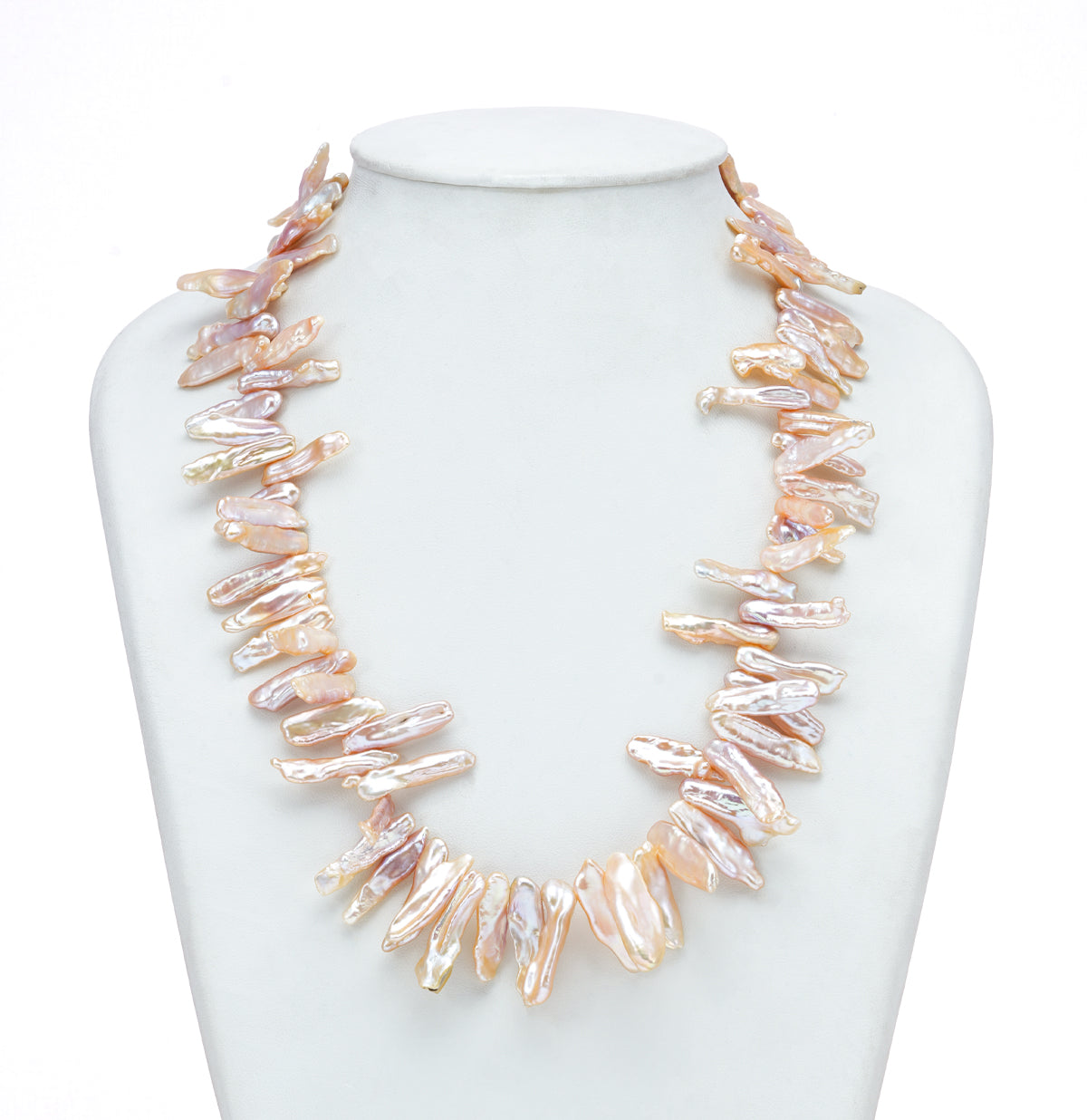 Add graceful elegance to your collection with the Freshwater Cultured Pearl Necklace. Featuring AA quality pink pearls in a unique fancy shape, each pearl measures 4–5MM and is arranged in a delicate single row over 18 inches. With a total approximate weight of 65.800 grams, this necklace is a perfect blend of sophistication and charm, covered under a life-long guarantee on pearls. Its soft color and distinctive design make it a charming addition to both modern and ethnic wardrobes. Perfect for festivals, weddings, or gifting, and pairs beautifully with floral prints, sarees, and pastel-hued outfits.