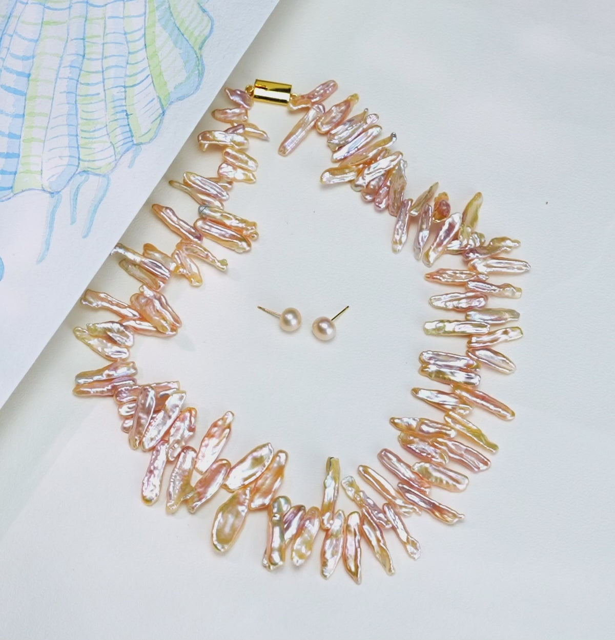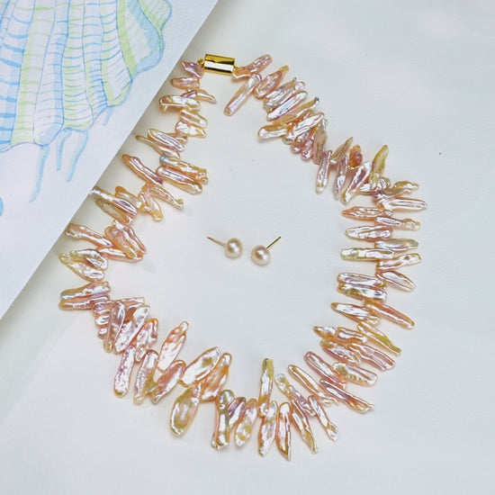 4.0-5.0mm Pink Baroque Fancy Freshwater Pearl Necklace Set - AA Quality