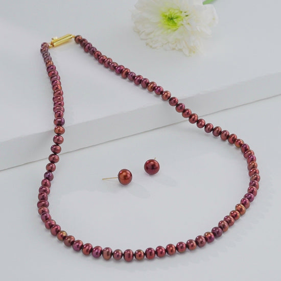 5.0-6.0mm Bronze Near Round Freshwater Pearl Necklace Set - A Quality