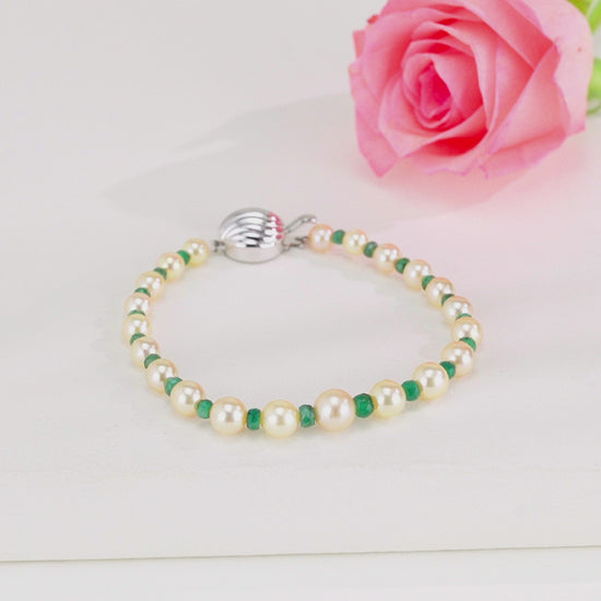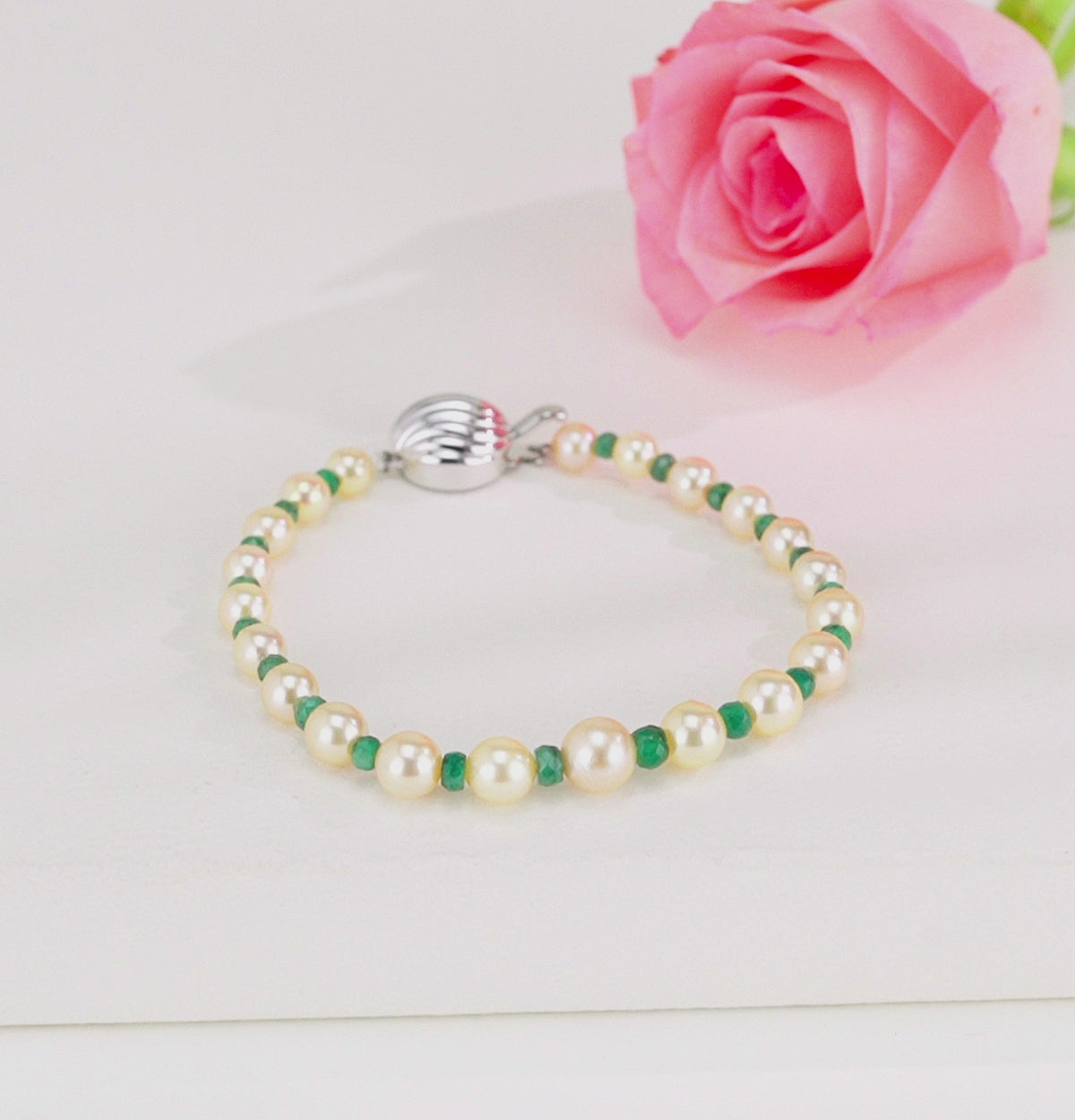 5.0-6.0mm Natural Emerald And Golden Akoya Saltwater Pearl Bracelet - AA Quality