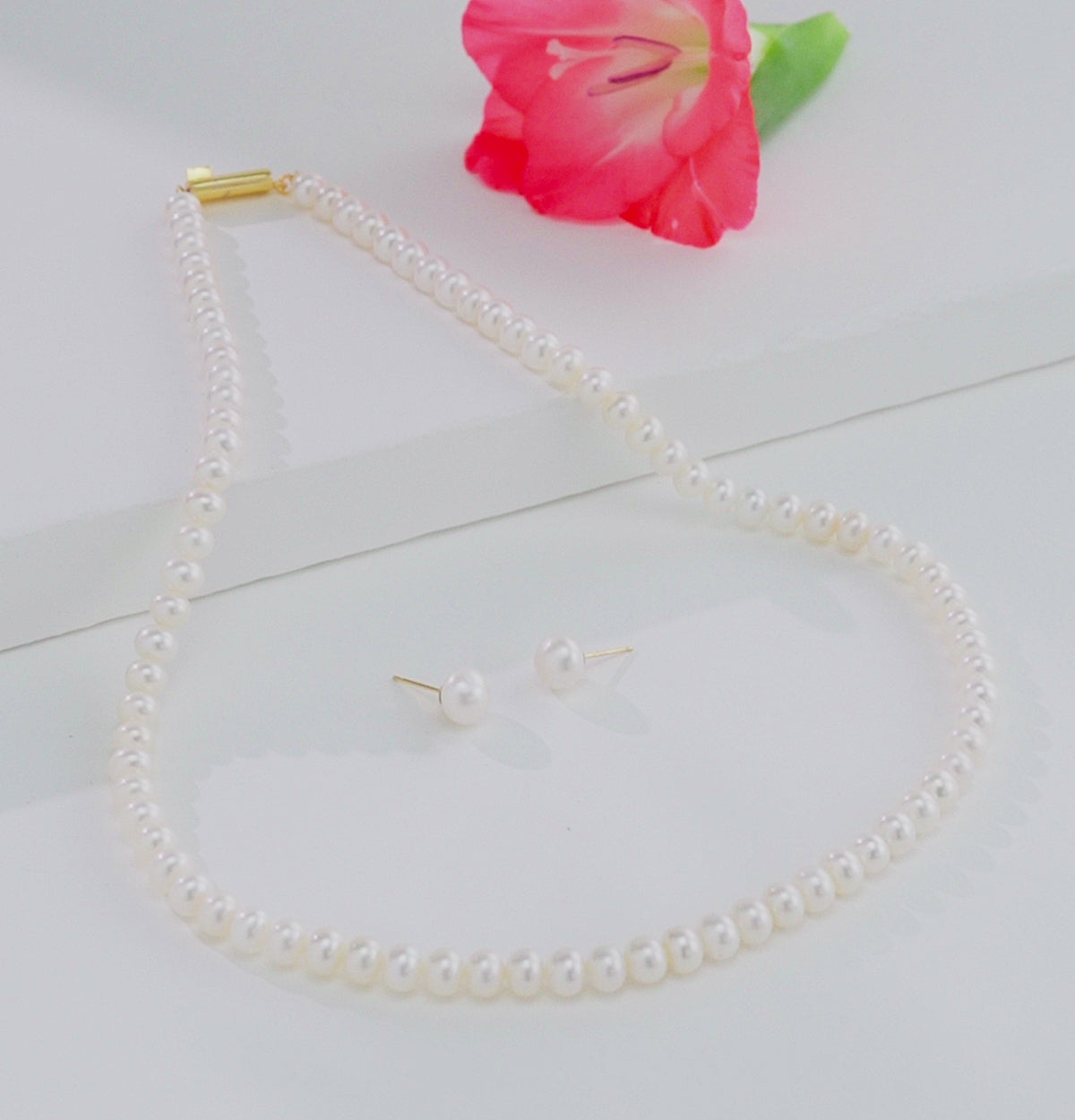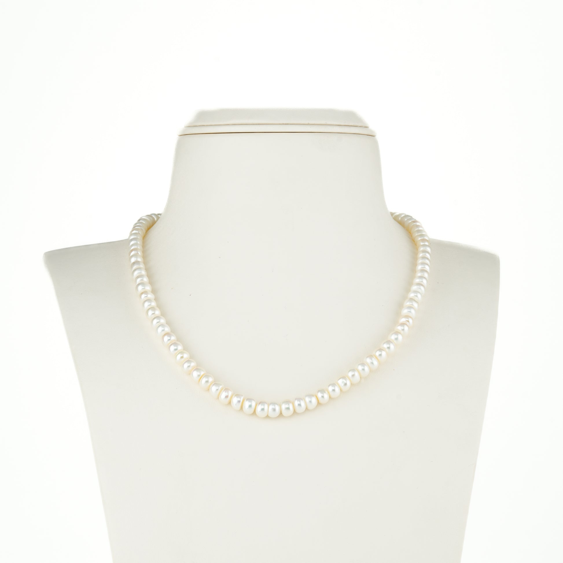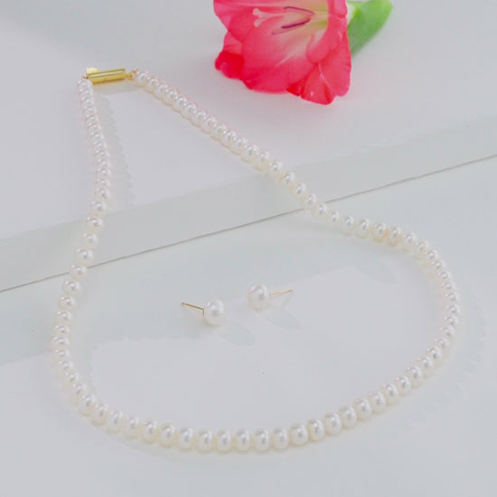 5.0-6.0mm White Button Freshwater Pearl Necklace Set - A Quality