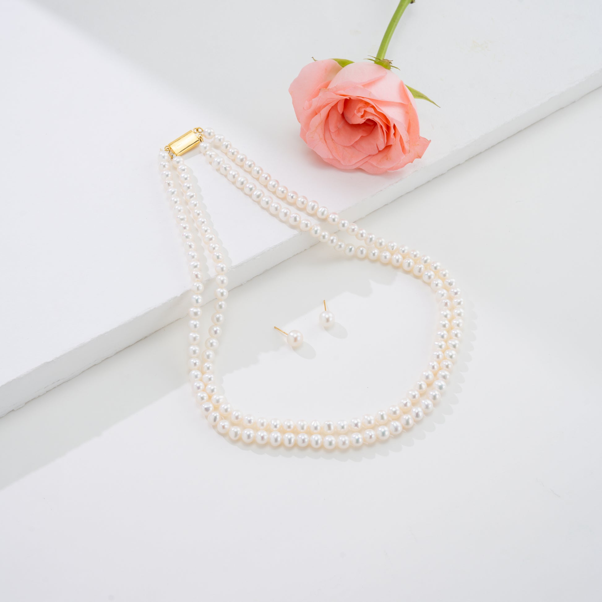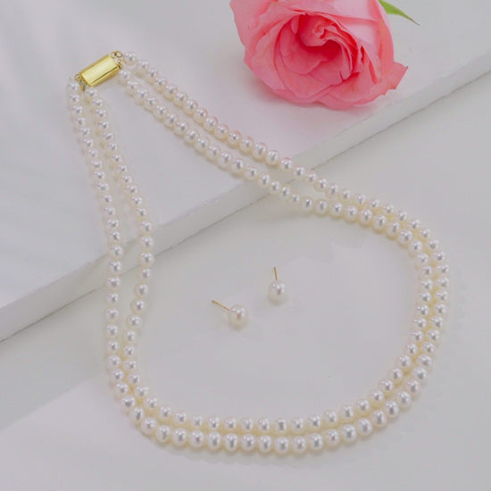 6.0-7.0mm White Near Round Freshwater Pearl Necklace Set - AA Quality
