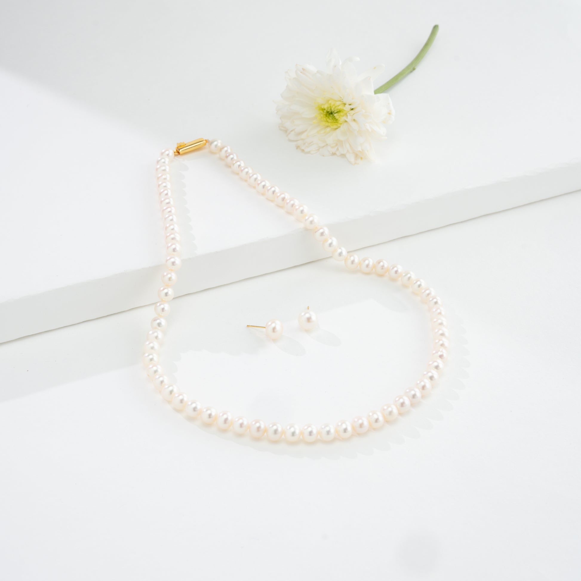 6.0-7.0mm White Round Freshwater Pearl Necklace Set - AAA Quality