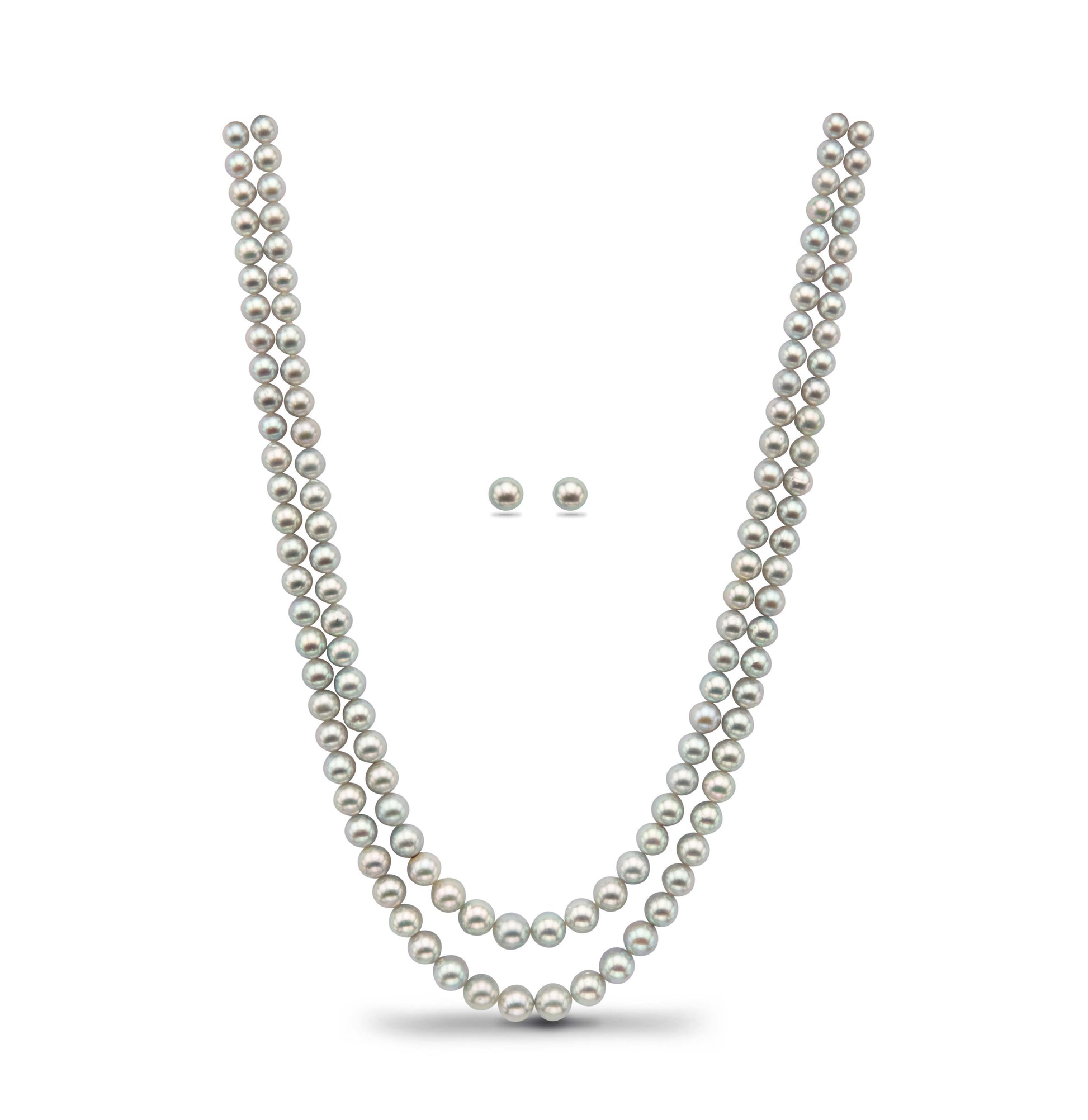 Grey Round Akoya Saltwater Pearls Grading Necklace Set -A Quality