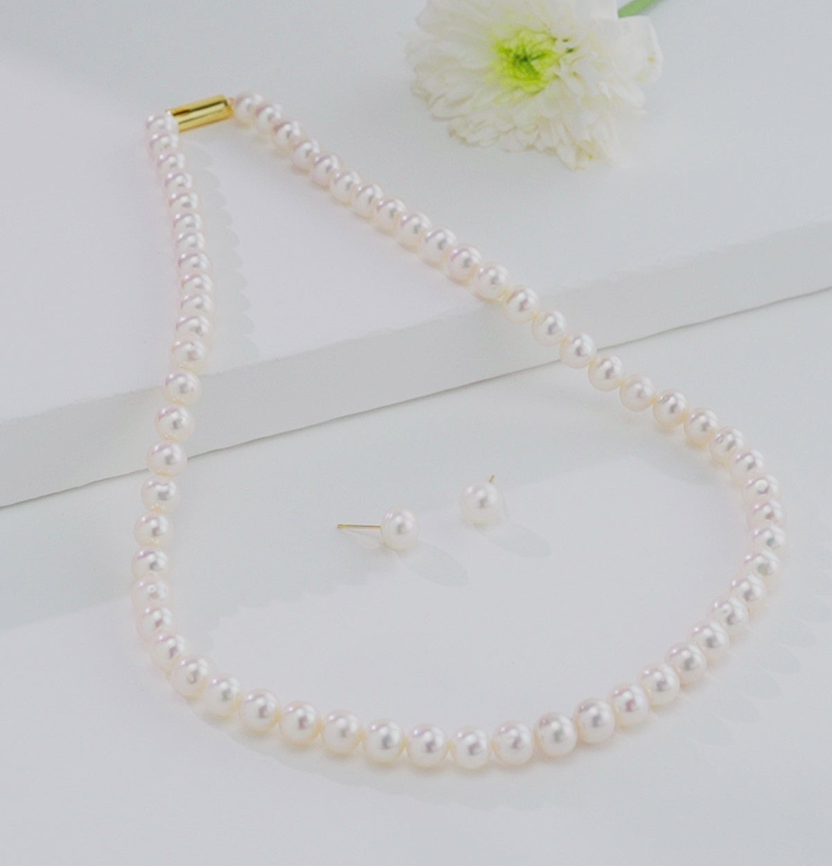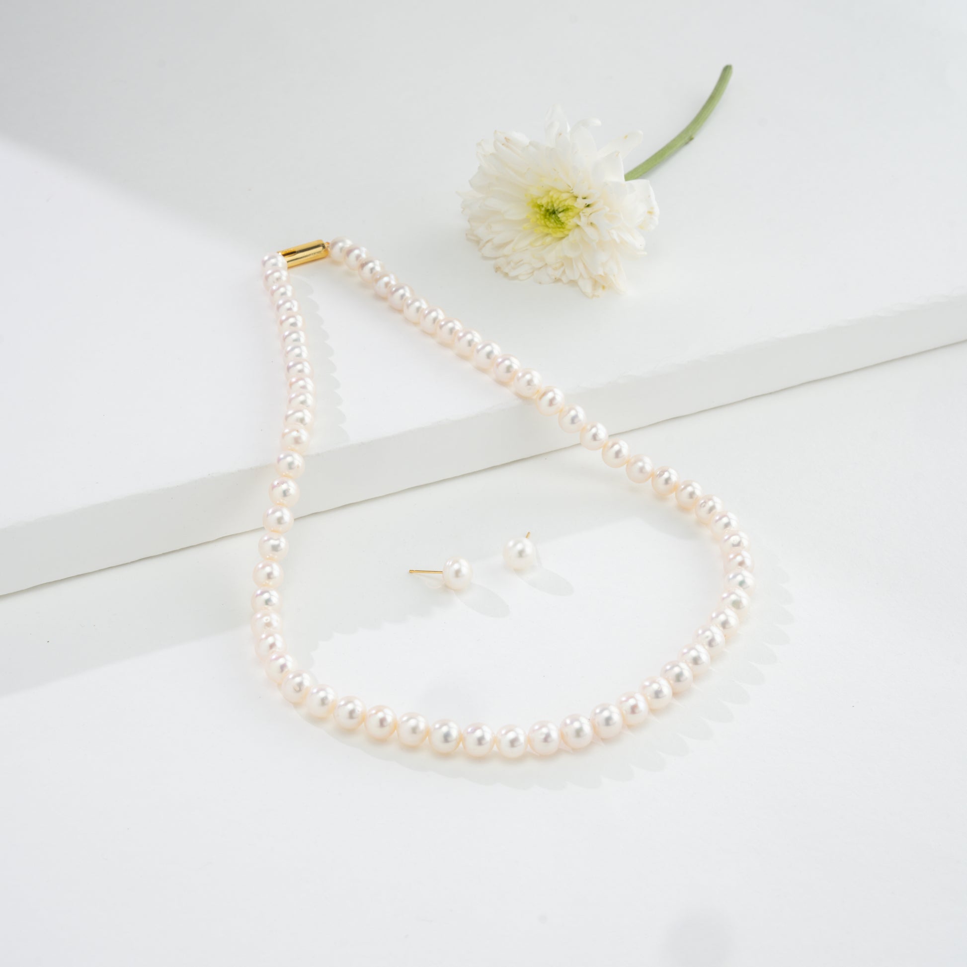 7.0-8.0mm White Round Freshwater Pearl Necklace Set - AAA Quality