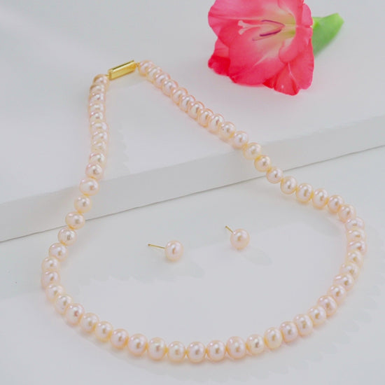 7.0-8.0mm Pink Near Round Freshwater Pearl Necklace Set - AA Quality