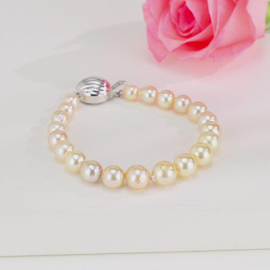 7.0-8.0mm Round Golden Akoya Saltwater Pearl Bracelet - AA Quality