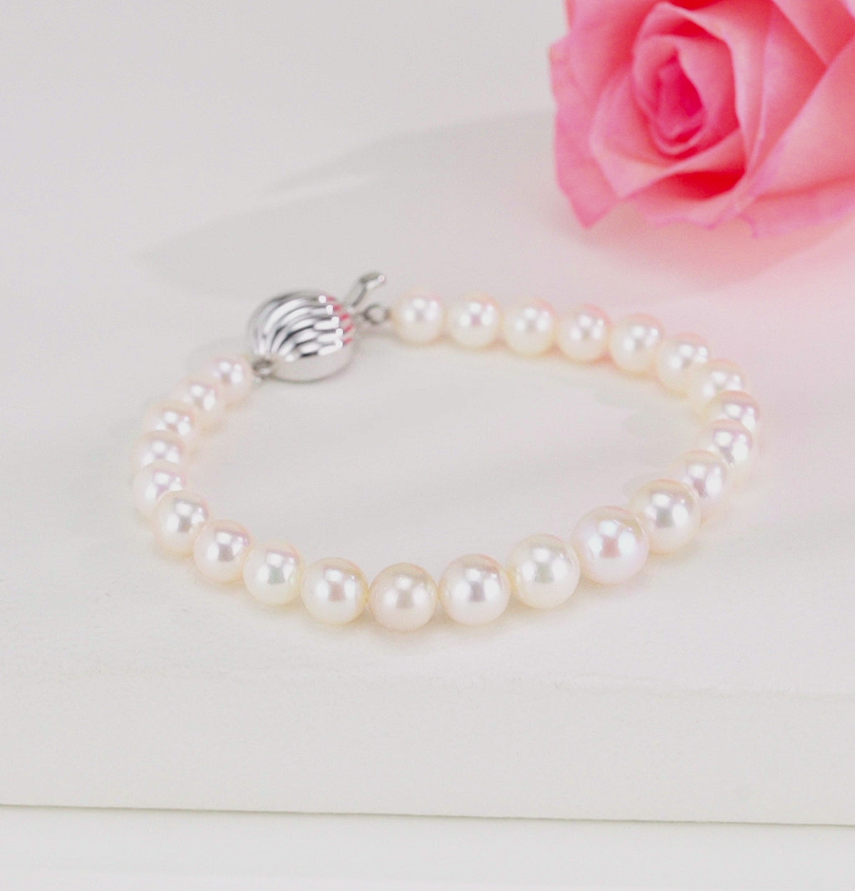 7.0-8.0mm White Round Akoya Saltwater Pearl Bracelet - AA Quality