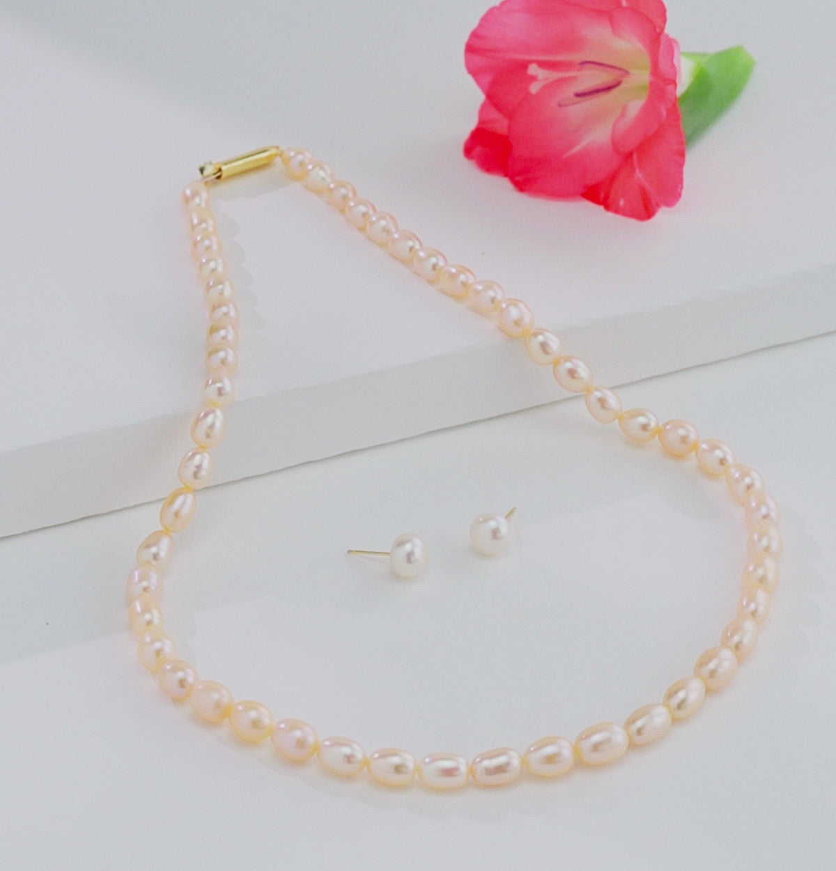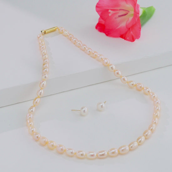 8.0-9.0mm Pink Drop Freshwater Pearl Necklace Set - A Quality