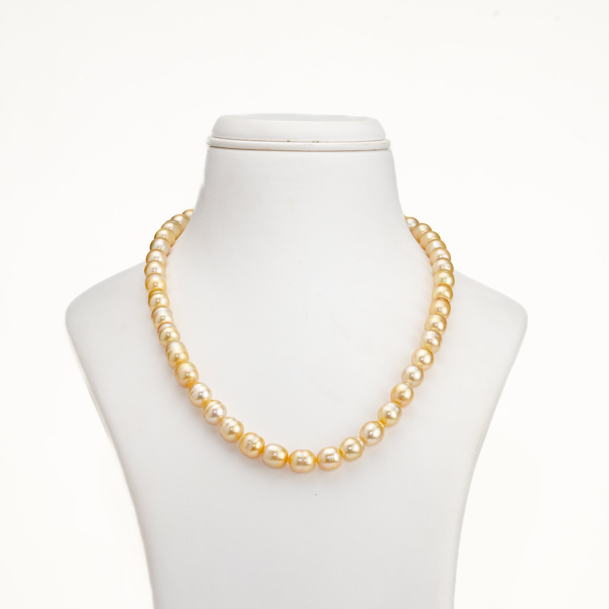 9.0-10.0mm Golden Drop Ringed South Sea Pearl Necklace Set - A Quality