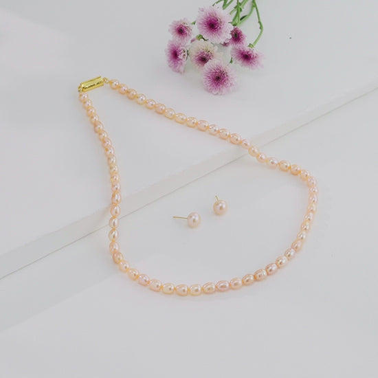 9.0-10.0mm Pink Drop Freshwater Pearl Necklace Set- AA Quality