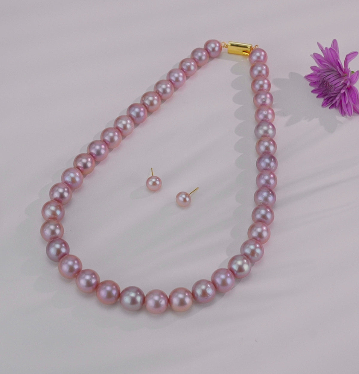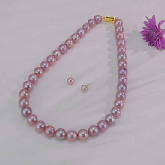 11.0-12.0mm Near Round Lavender Freshwater Pearl Necklace Set - AA Quality