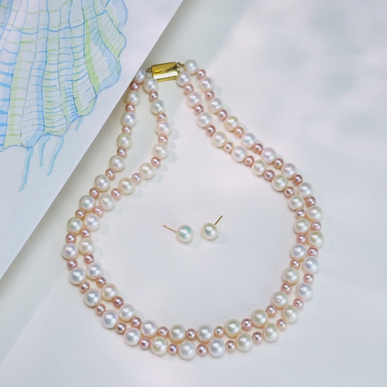9.0-10.0mm Multicolor Near Round Freshwater Pearl Necklace Set - AA Quality