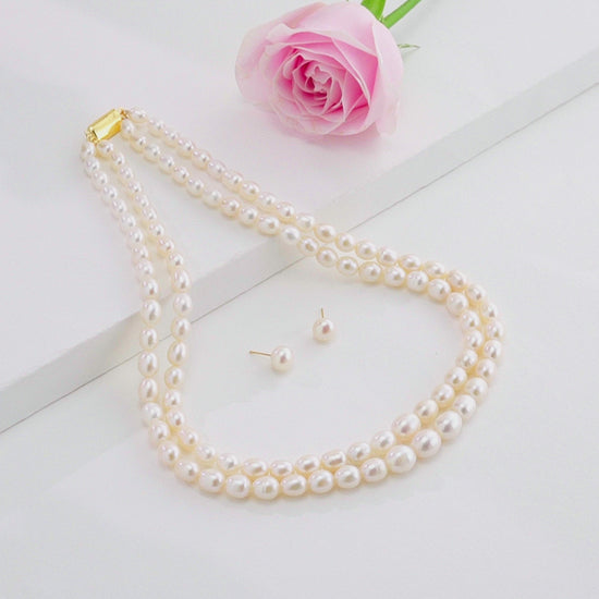 9.0-10.0mm White Drop Freshwater Pearl Necklace Set - AA Quality