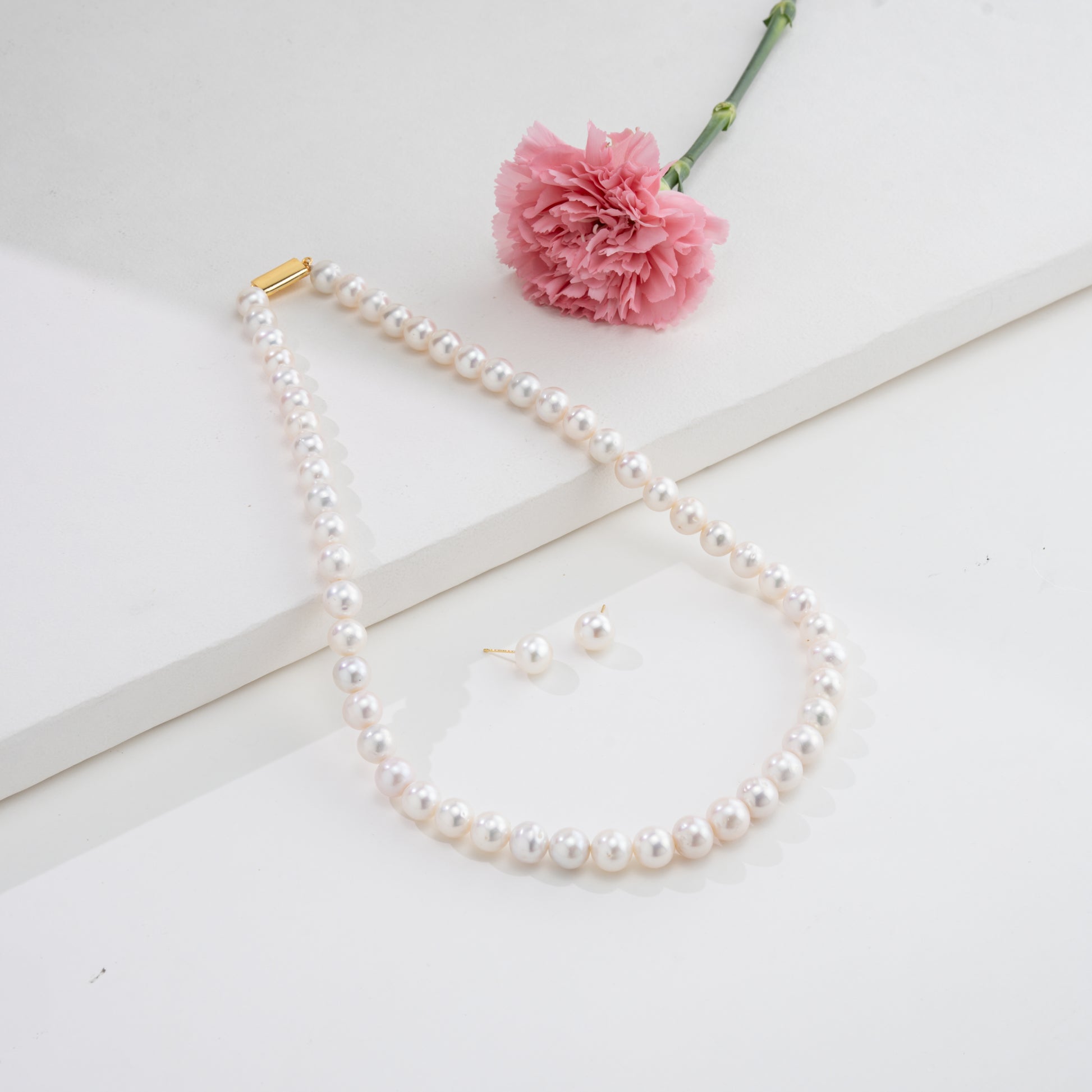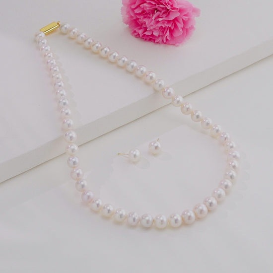 9.0-10.0mm White Round Freshwater Pearl Necklace Set - AAA Quality