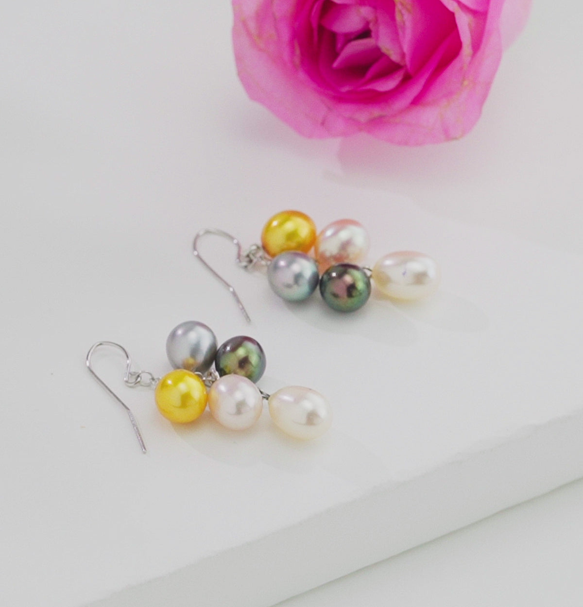 Adorable Multicolor Drop Freshwater Pearl Hanging Earrings
