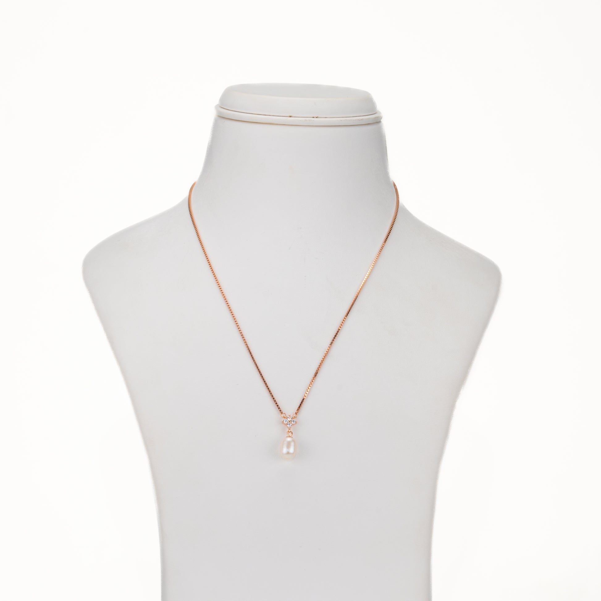 The Stylish Rose Gold Silver Freshwater Pearl Necklace Set is designed to bring graceful sophistication to any look. Featuring 9–10 mm white drop-shaped freshwater cultured pearls, this set exudes a soft, elongated elegance that flatters the neckline beautifully. Arranged in a single 16-inch row, the necklace sits comfortably and adds a refined glow to both everyday wear and special occasions. The pearls are set on a high-quality 92.5 sterling silver base with a rose gold finish, offering durability with modern charm. Backed by a Life Long Guarantee on Pearls, this set ensures lasting beauty, authenticity, and timeless appeal.