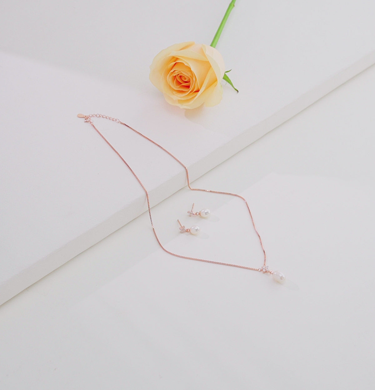 Stylish Rose Gold Silver Freshwater Pearl Necklace Set