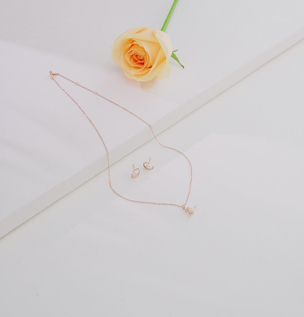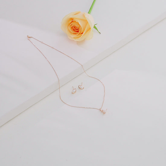 Classic Rose Gold Silver Freshwater Pearl Necklace Set