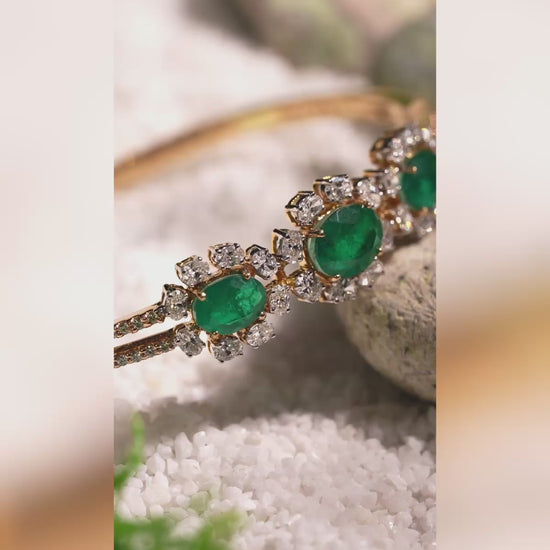 Enquire Now On WhatsAppThe Antique Emerald Diamond Bracelet is a regal blend of heritage and luxury, crafted with intricate detailing in gold and adorned with radiant emeralds and sparkling diamonds. Its vintage-inspired design reflects timeless artistry, while the combination of deep green emeralds and brilliant diamonds creates a striking harmony of elegance and sophistication. Lightweight yet opulent, this bracelet is a treasured piece for those who value classic charm and fine craftsmanship. Ideal for weddings, festive occasions, and cultural gatherings, it pairs beautifully with sarees, lehengas, and modern outfits, adding a royal touch of grace and brilliance to your overall attire.