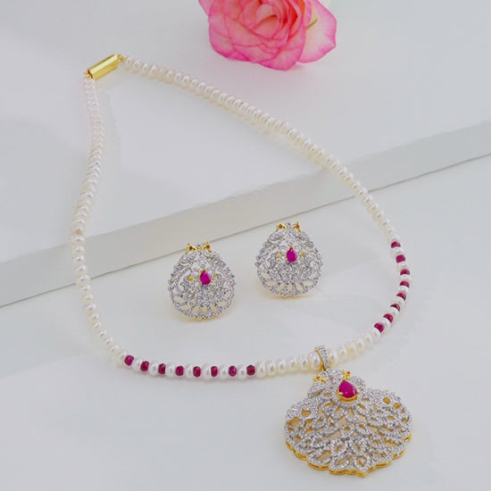 Attractive Natural Ruby Freshwater Pearl Necklace Set