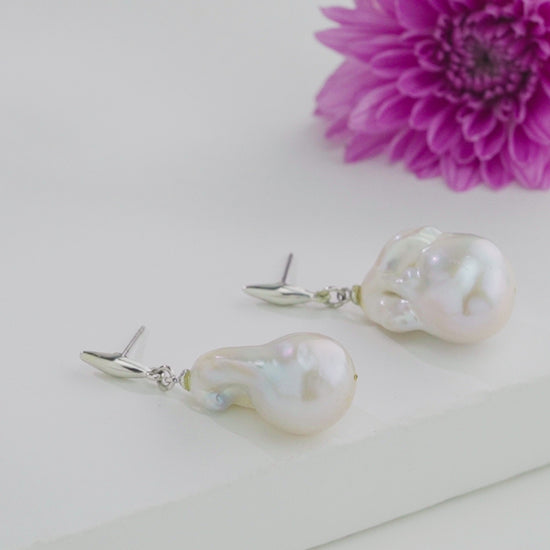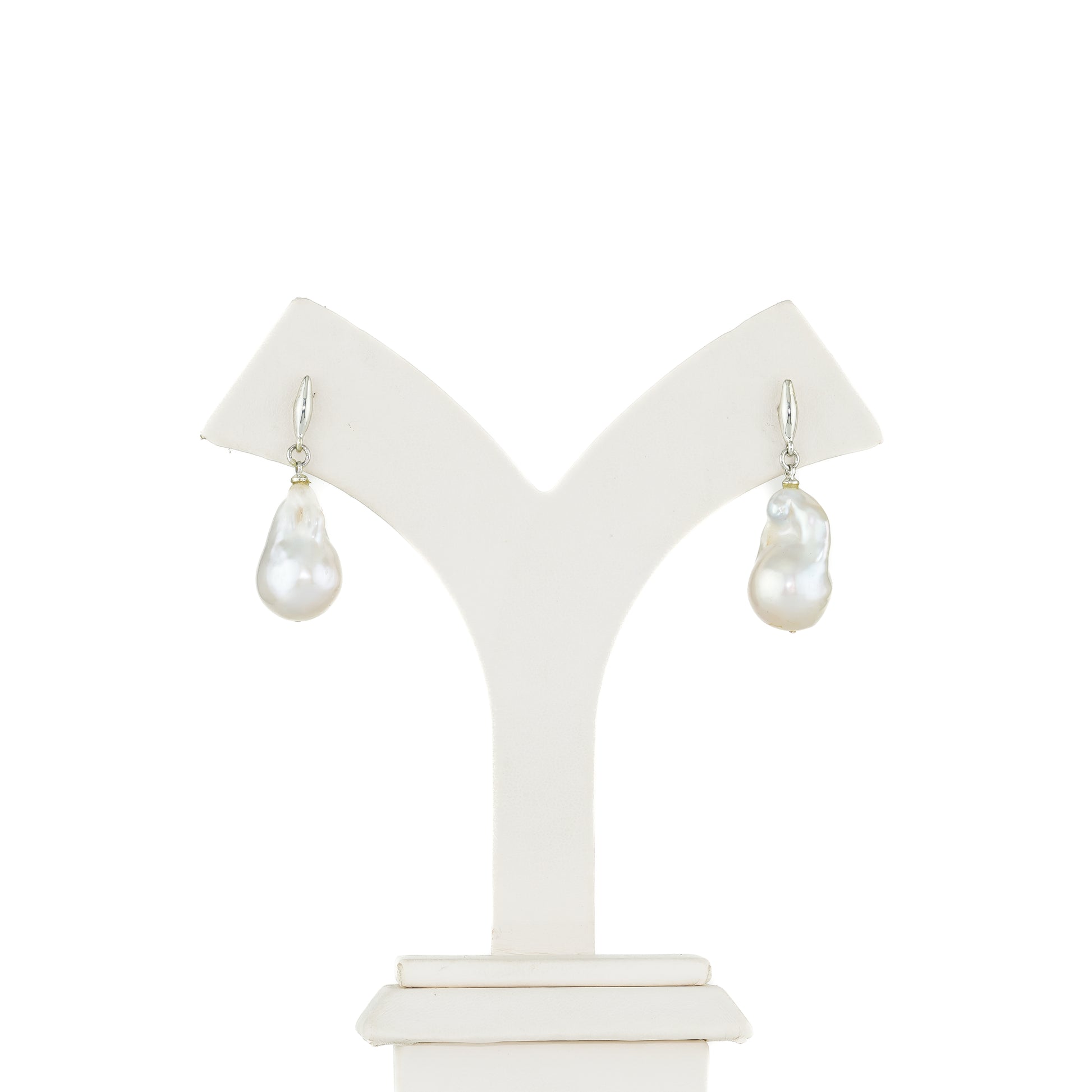 Artistic and elegant, these earrings feature Freshwater Cultured Pearls in a unique white baroque shape measuring 19–20MM. Known for their organic form and captivating luster, each AA quality pearl is carefully selected to highlight its natural beauty and individuality. The distinctive shape adds character, ensuring every pair is truly one of a kind. Expertly crafted and backed by our Life Long Guarantee on Pearls, these earrings promise lasting elegance. Perfect for weddings, festive occasions, and high-fashion looks, they also add a bold, artistic flair to casual and contemporary outfits, making them a versatile statement accessory.