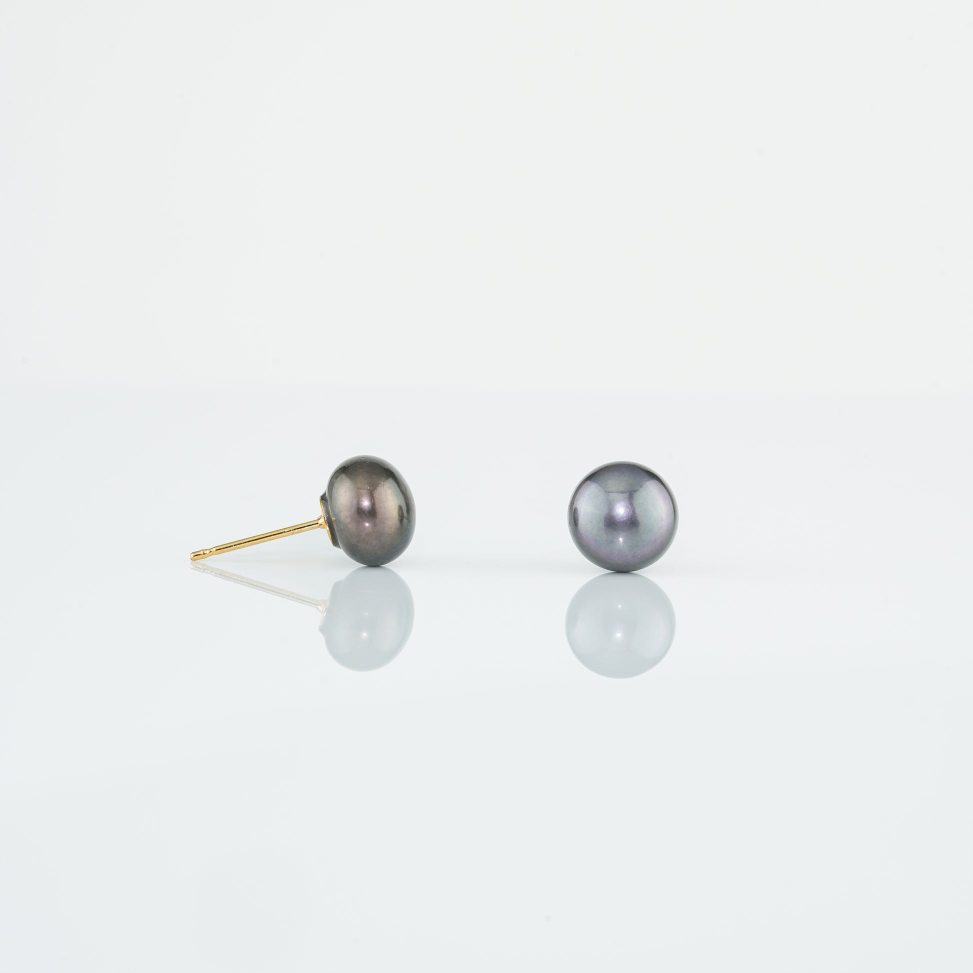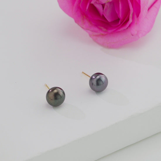 Dark Blue Button Freshwater Pearl Stud Earrings