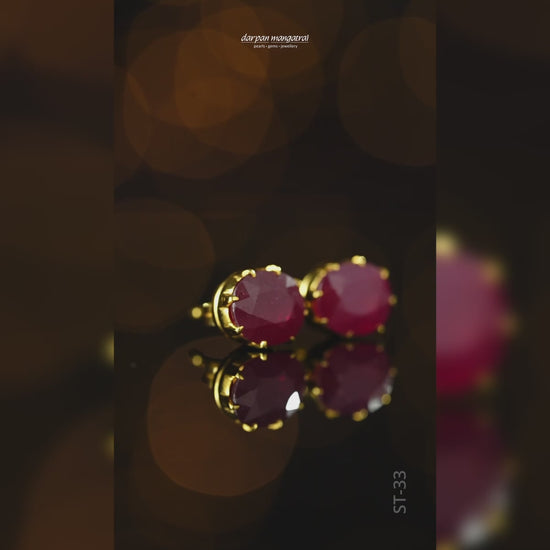 Enquire Now On WhatsAppCommand attention with these Bold Ruby Gold Earrings, a perfect fusion of fiery ruby brilliance and radiant gold craftsmanship. The deep red rubies symbolize passion and strength, while the polished gold frame adds a timeless glow. Exquisitely designed to balance elegance with boldness, these earrings make a powerful style statement. Their intricate finish highlights the richness of traditional artistry while offering modern versatility. Perfect for festive occasions, weddings, or evening gatherings, these earrings elevate your style effortlessly. Pair them with sarees, lehengas, or contemporary outfits for a striking and unforgettable presence.