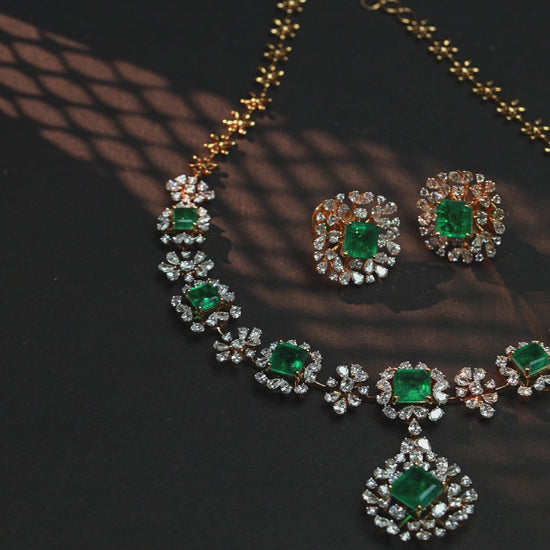 Enquire Now On WhatsAppThe Brilliant Diamond Necklace Set is designed to radiate unmatched elegance and timeless charm. Featuring a stunning necklace paired with perfectly matching earrings, this set is adorned with meticulously cut diamonds that shine with dazzling brilliance. Crafted with precision, it combines classic sophistication with contemporary artistry, making it a treasured piece for any fine jewelry collection. Its luxurious sparkle and graceful design make it the perfect accessory for unforgettable moments. Ideal for weddings, festive celebrations, or formal gatherings, this set enhances both traditional outfits and modern attire with elegance and grandeur.