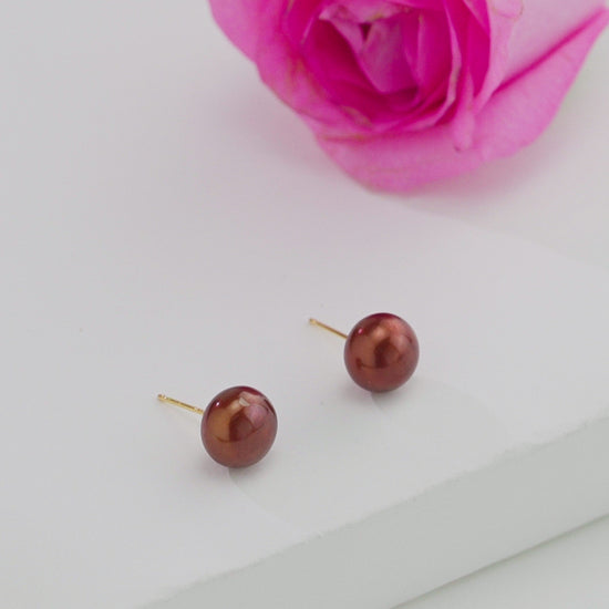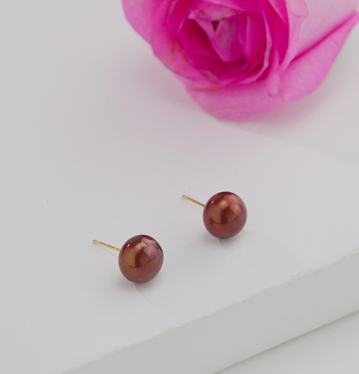 Radiating warm elegance, these earrings showcase Freshwater Cultured Pearls in a rich bronze button shape measuring 9–10MM. Each Grade A pearl is selected for its smooth surface, perfect roundness, and captivating metallic sheen. Expertly set for lasting wear, they come with our Life Long Guarantee on Pearls, ensuring enduring beauty and quality. The bronze tone adds a luxurious and contemporary edge to the timeless pearl design, making them a unique addition to your collection. Perfect for festive occasions, elegant evenings, and stylish everyday wear, these earrings complement both traditional attire and modern fashion with effortless charm.
