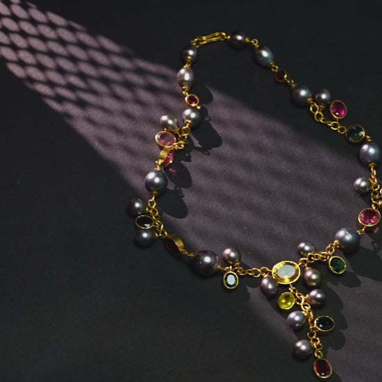 Enquire Now On WhatsAppIntroducing the Celestial Grey Pearl Multicolor Stone Necklace, a captivating blend of subtle elegance and vibrant charm. Featuring lustrous grey pearls accented with carefully selected multicolor stones, this necklace exudes sophistication and artistry. Each stone is meticulously placed to create a harmonious, eye-catching design that enhances its graceful appeal. Lightweight and comfortable, it sits beautifully around the neckline, making it an effortless statement piece. Perfect for festive occasions, weddings, or special gatherings, this necklace pairs seamlessly with traditional sarees, lehengas, or modern attire, adding a refined pop of color and elegance that elevates your overall look with style and charm.