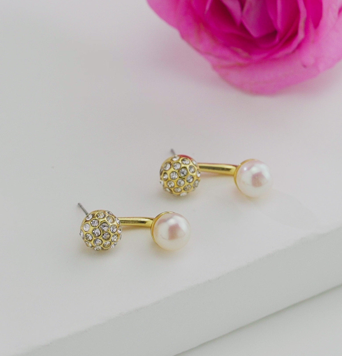 Charming White Stone Freshwater Pearl Stud Earring