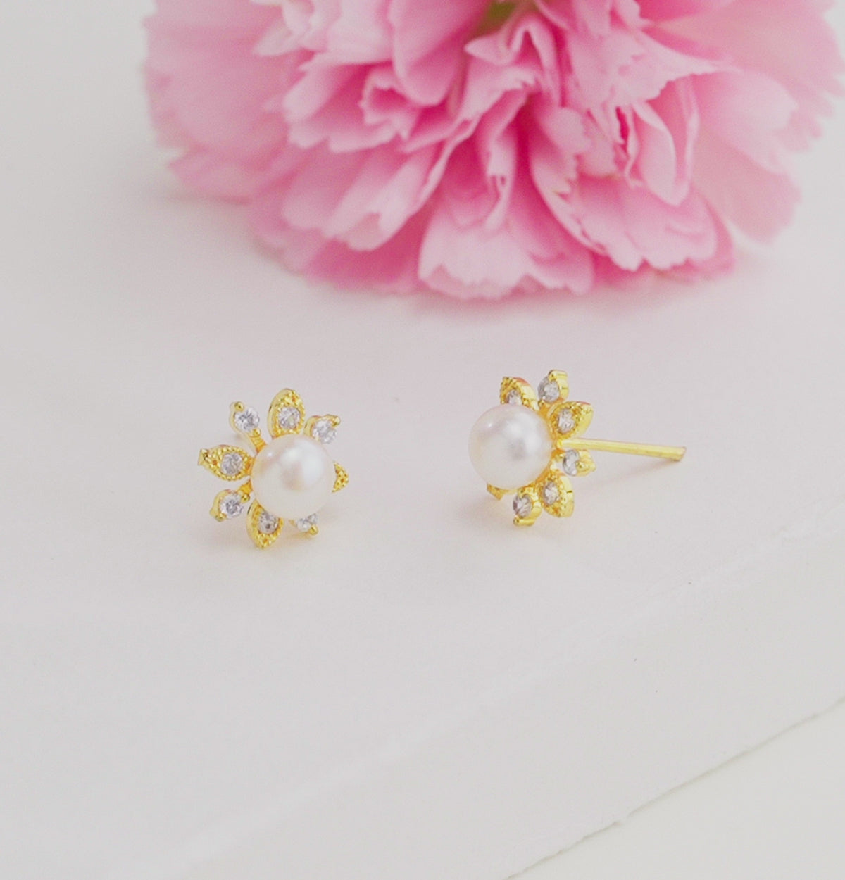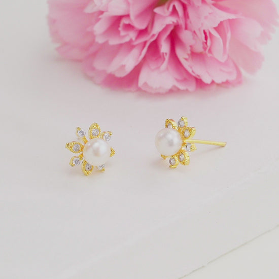 Charming White Stone Pearl Stud Earrings