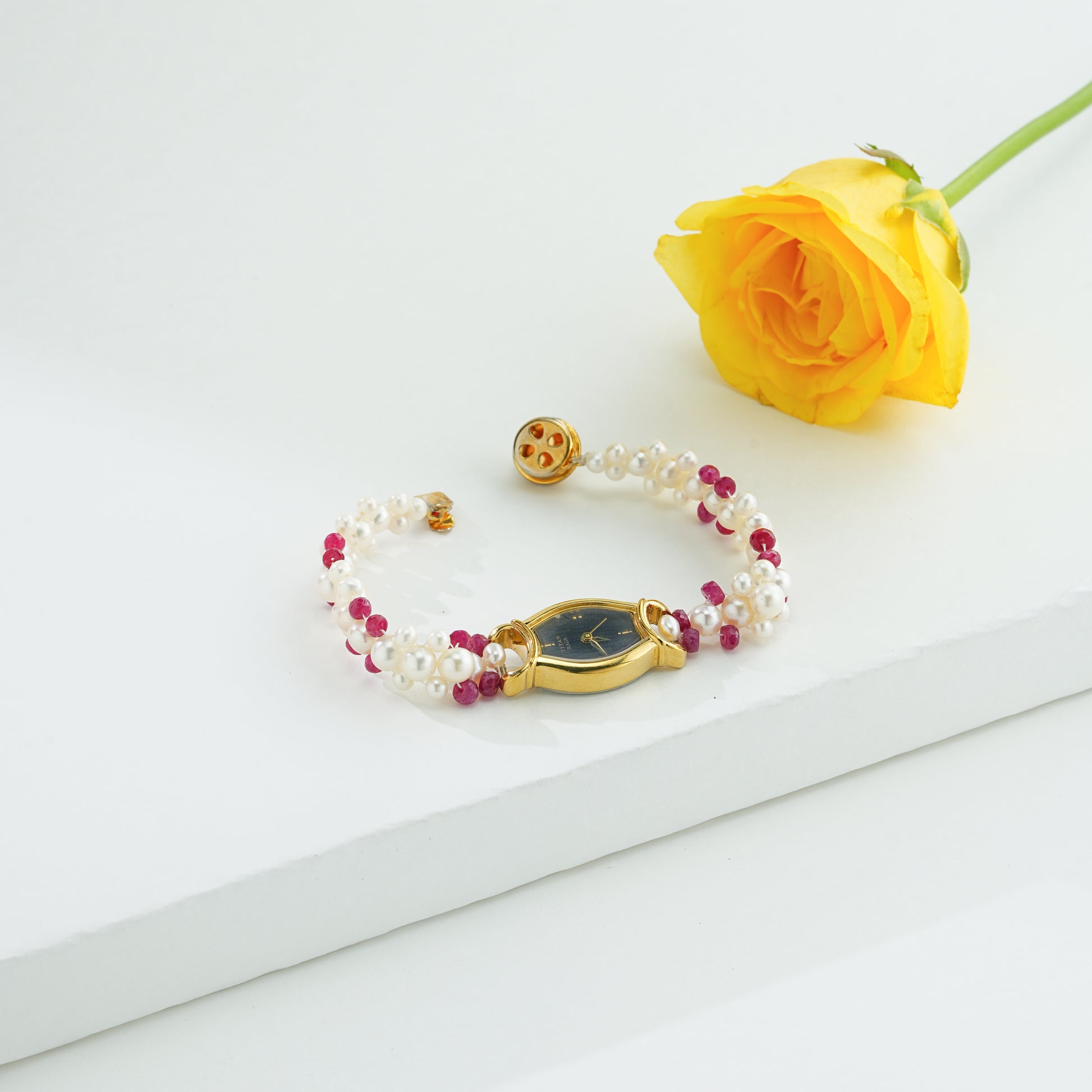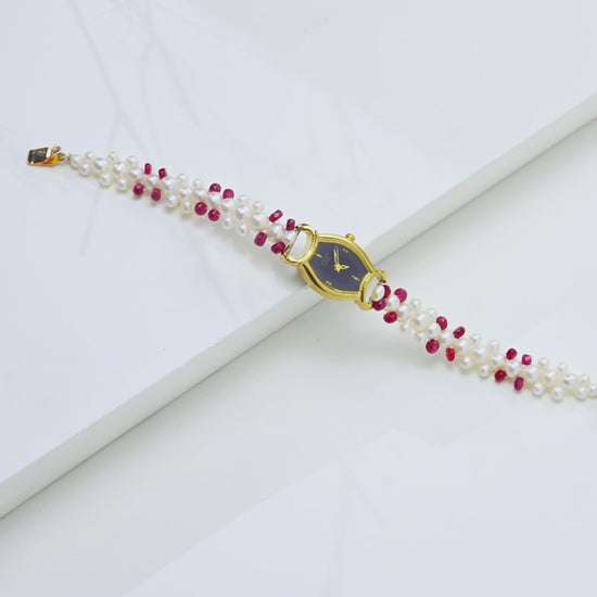 Classic Red Stone Freshwater Pearl Watch
