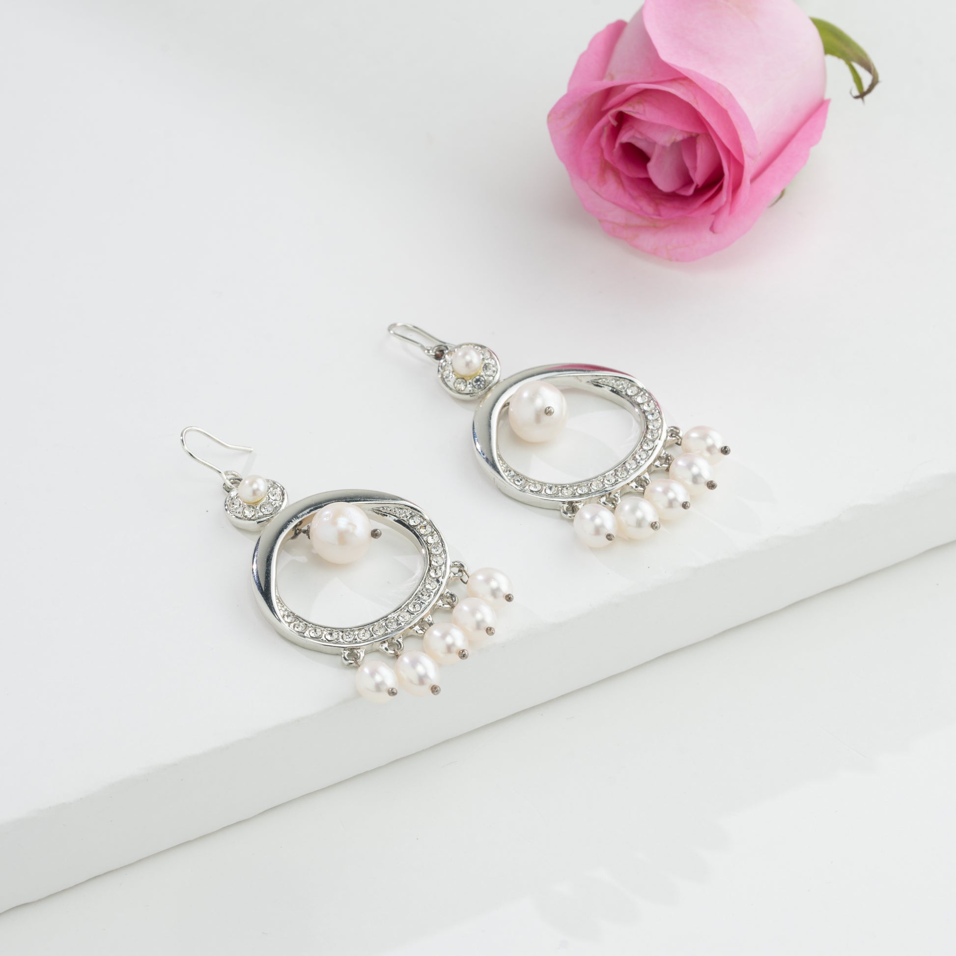 Classic White Mix Freshwater Pearl Chand Bali