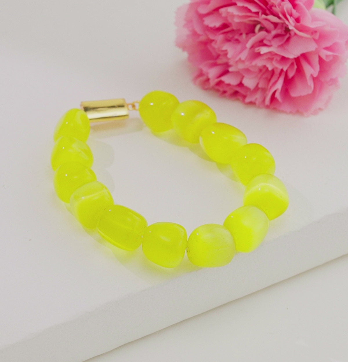 Bright, radiant, and effortlessly stylish, the Yellow Semi Precious Beads Bracelet brings a touch of sunshine to every look. Crafted with beautifully polished oval-shaped semi-precious yellow beads, this bracelet stands out with its natural glow and smooth finish. The warm yellow hue symbolizes positivity, confidence, and joy—making it not only a fashion accessory but also a meaningful keepsake.