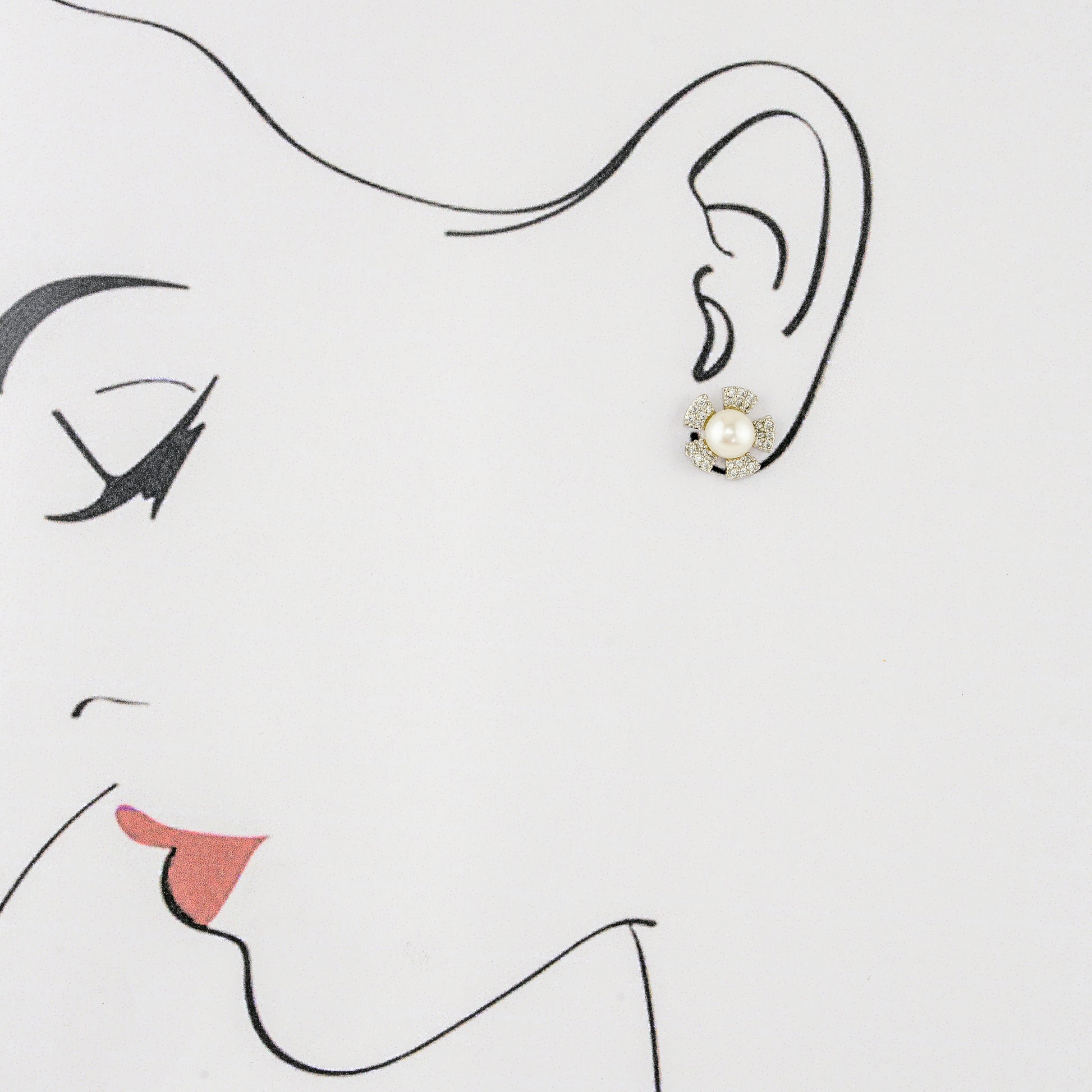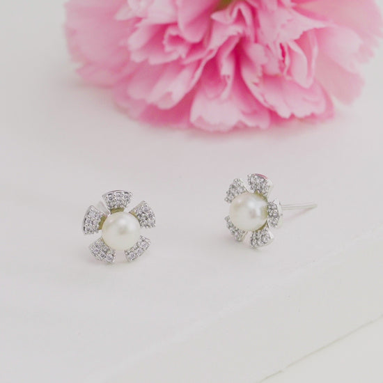 Classic White Stone Freshwater Pearl Stud Earrings