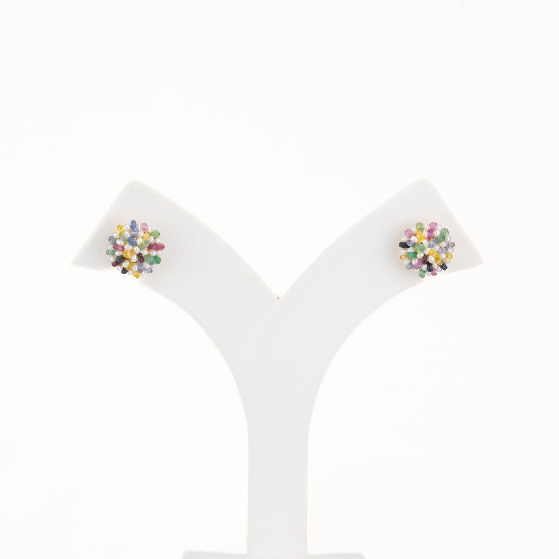Brighten your look with our Multicolor Stud Earrings, designed to add a vibrant pop of color to your jewelry collection. Featuring a dazzling array of hues in a cut-faceted finish, these studs bring playful elegance and bold charm to any outfit. Crafted with precision and backed by our commitment to quality, they’re a perfect blend of contemporary style and timeless appeal. Whether you're dressing up for a festive celebration, a casual outing, or a formal event, these multicolor studs add flair to ethnic wear, western outfits, and everything in between. A must-have for versatile styling.