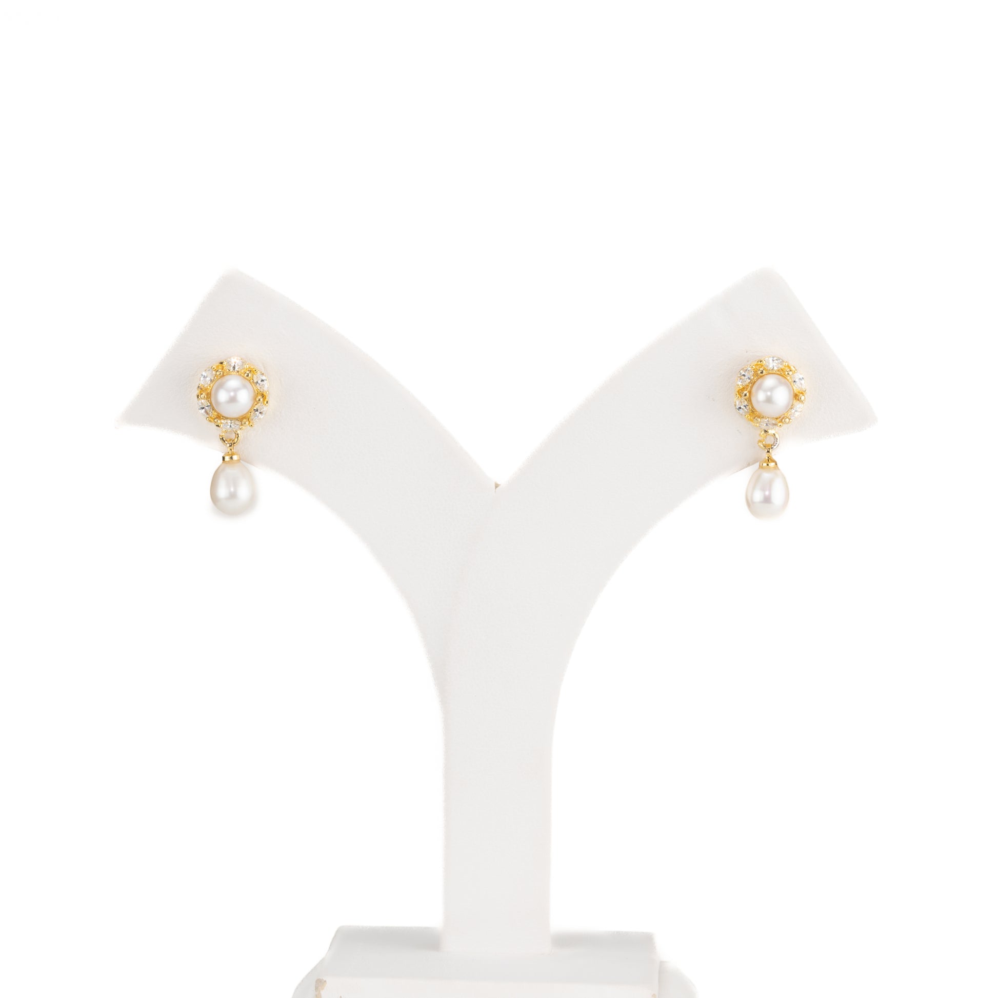 Grace your look with these Delicate White Drop Pearl Studs Earrings, finely crafted from freshwater cultured pearls. The elegant drop shape and classic white tone highlight the natural charm of pearls sized 8-9 MM in A-grade quality. Subtle yet sophisticated, these earrings are versatile enough for daily elegance or festive occasions. Backed by a Life Long Guarantee on Pearls, they are a timeless addition to your jewelry collection.
