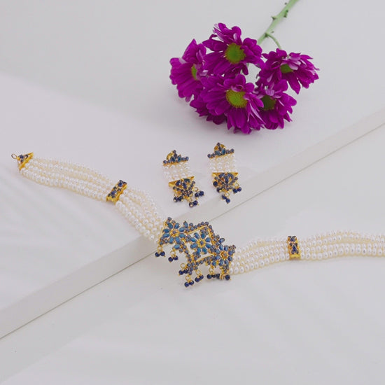 Designer Dark Blue Stone Freshwater Pearl Choker Set