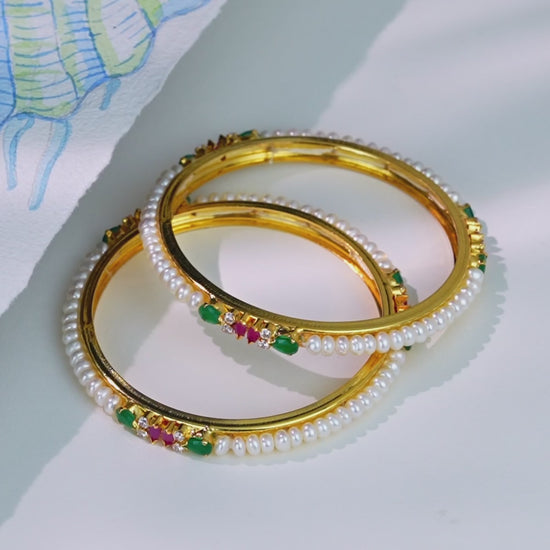Adorn your wrist with timeless elegance using our bangle, crafted with exquisite freshwater cultured pearls. Featuring lustrous button-shaped pearls in a vibrant blend of white, red, and green, each pearl measures 2–3MM and boasts A quality for superior shine and smoothness. This piece is available in sizes 2`4, 2`6, and 2`8, ensuring a perfect fit. Backed by a lifelong guarantee on pearls, it's a luxurious addition to any collection. Ideal for festive occasions, weddings, and traditional attire, this bangle adds a refined charm to ethnic wear and celebratory ensembles.