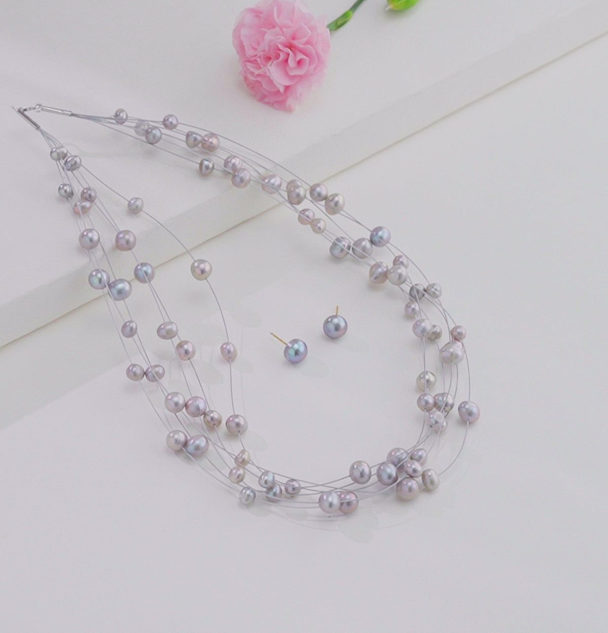 Edgy Grey Near Round Wire Freshwater Pearls Necklace