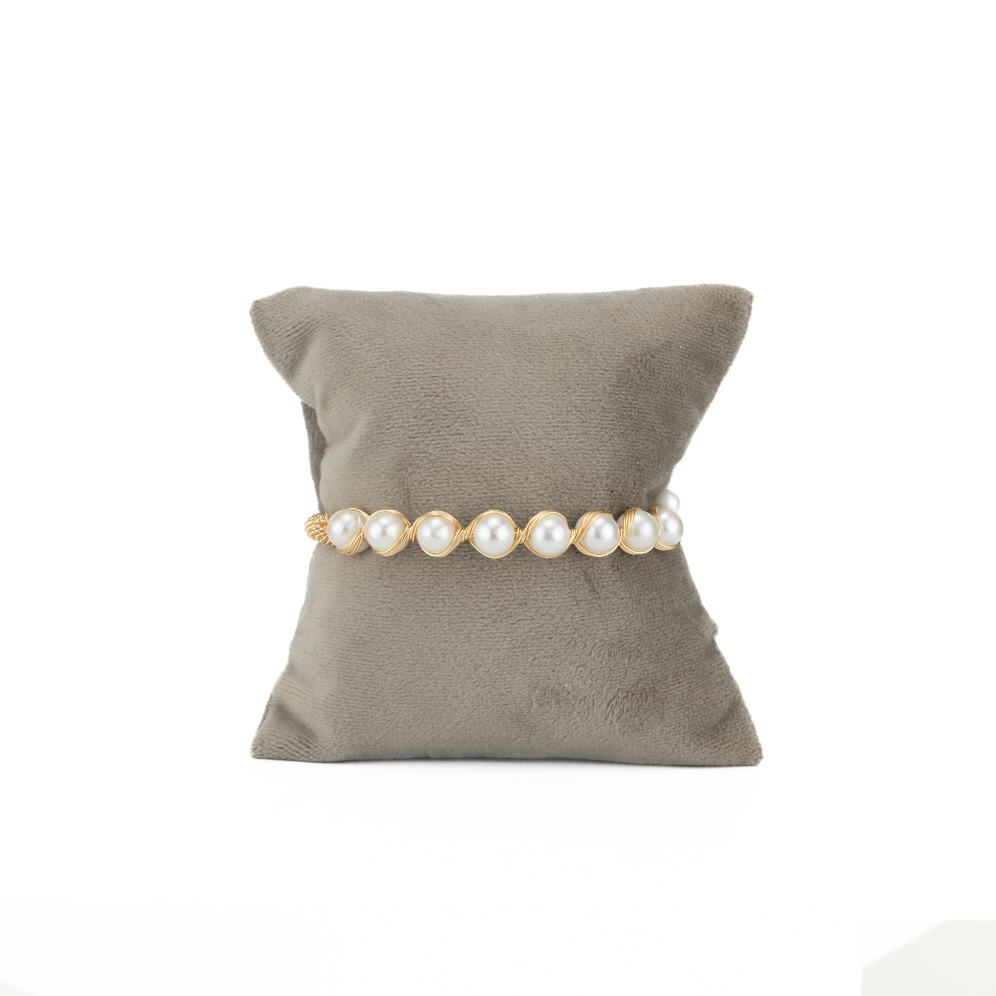 This stylish bracelet is made with Freshwater Cultured Pearls, featuring lustrous near-round pearls in a classic white tone. Sized at 7–8 MM and graded A quality, each pearl reflects elegance and charm. Designed in a single row with an adjustable length, it ensures a perfect fit and lasting comfort. Backed by a life-long guarantee on pearls, it is both timeless and reliable.