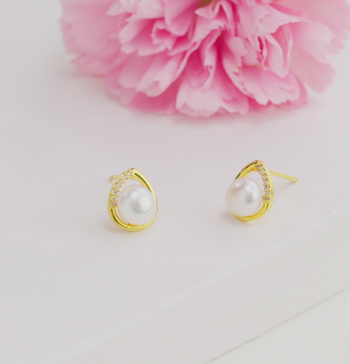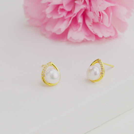 Enduring White Stone Freshwater Pearl Stud Earrings
